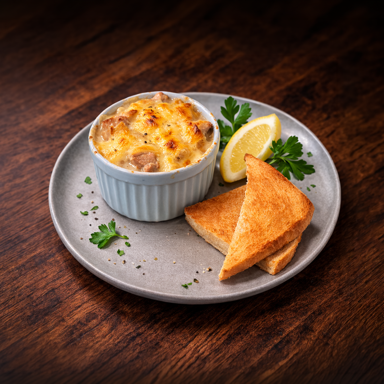 Zartes, fein gewürztes Schweinefleisch, liebevoll in einer cremigen Sauce veredelt, im Ofen goldbraun überbacken – unser Würzfleisch ist pure Wohlfühlküche. Außen knusprig, innen saftig, mit einer Würze, die sofort Lust auf den nächsten Löffel macht.